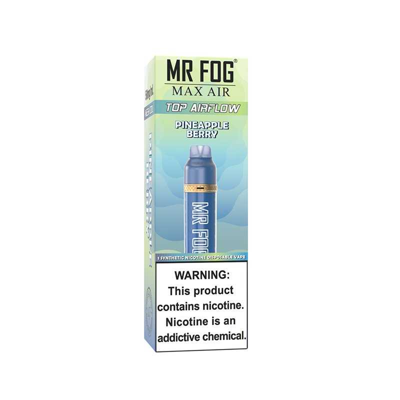 Sale! Mr Fog Max Air Pineapple Berry Disposable – 3000 Puffs $13.99 – $139.99Price range: $13.99 through $139.99 Options Choose an option1 Pack10 PacksClear Mr Fog Max Air Pineapple Berry Disposable – 3000 Puffs quantity Add to cart SKU: N/A Categories: Mr Fog, Mr Fog Max Air Tags: 3000 puffs, berry, convenience, disposable device, flavor fusion, MR FOG MAX AIR, mr fog switch flavors, mr fog switch vape, mr?fog?switch, on-the-go, pineapple, refreshing, satisfaction, tropical, Vaping, vibrant Additional information Reviews (0) Additional information Options 1 Pack, 10 Packs Reviews There are no reviews yet. Be the first to review “Mr Fog Max Air Pineapple Berry Disposable – 3000 Puffs” Cancel replyYour email address will not be published. Required fields are marked *Your rating * Rate… Perfect Good Average Not that bad Very poor Your review *Name * Email * Save my name, email, and website in this browser for the next time I comment. Related products Quick View Sale! Quick View Mr Fog, Mr Fog Max Air MA8500 PuffsDouble Razz Mr Fog Max Air MA8500 Disposable Vape $25.99 Original price was: $25.99.$16.99Current price is: $16.99. Add to cart Quick View Out of Stock Quick View Oxbar, OXBAR Magic Maze Pro - 10K PuffsWAP DROPS OXBAR PRO 5% Nic 10K Disposable $14.99 – $16.99Price range: $14.99 through $16.99 Select options This product has multiple variants. The options may be chosen on the product page Quick View Out of Stock Sale! Quick View Oxbar, OXBAR Magic Maze Pro - 10K PuffsJOLLY GREEN APPLE OXBAR PRO 5% Nic 10K Disposable $16.99 – $159.99Price range: $16.99 through $159.99 Select options This product has multiple variants. The options may be chosen on the product page