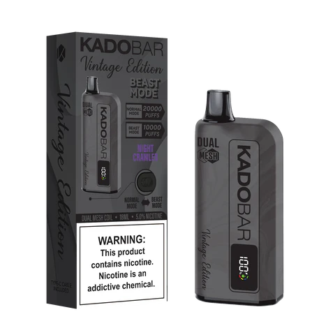 The Kado Bar Vintage Edition series is known for combining timeless design with cutting-edge performance. Equipped with 10,000 puffs, dual mesh coil technology, and Type-C fast charging, this device ensures long-lasting power, dense vapor production, and consistent flavor delivery. Night Crawler is not just a flavor—it’s a statement for vapers who want bold taste and refined quality in one sleek device.